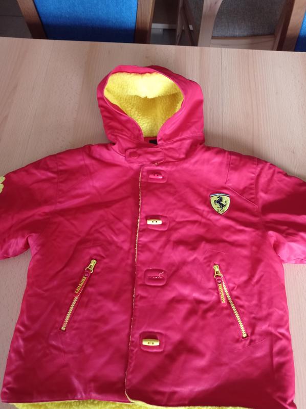 Куртка зимова Ferrari червоного кольору для дітей 3-4 років. Оригінал. 100% катон (щільний), підкладка флісова. Стан хороший, тільки немає одного гудзика. Довжина рукава 34см (від плеча до кисті), довжина по спині 44см.