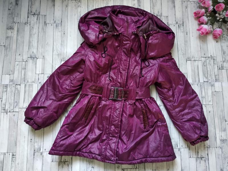Зимняя куртка для девочки на синтепоне в хорошем состоянии,как на фото Размер 10-11 лет,рост 140-146 см Замеры: длина 66 см рукав 54 см,с манжетами плечи 39 см ПОГ - 44 см ПОТ - 34 см,пояс ПОБ - 50 см цвет малиновый,бордовый рукава на резинке,капюшон отстегивается,куртка с поясом
