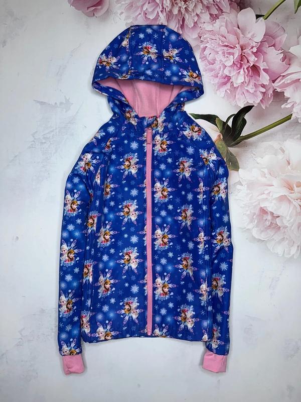 Куртка FROZEN Материал Soft Shell Водозащитный , не продувает. Внутри полностью флисовое напыление Спереди 2 кармана Высокая горловина Эластичные манжеты. Состояние отличное без дефектов 8-9 лет/122-128 р Длина 55. ПОГ 42. Рукав от шеи 60(+5 манжет)