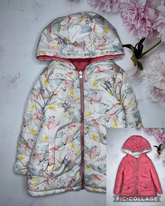 Стильная двухсторонняя курточка с ярким принтом Карманы с двух сторон Состояние идеальное без дефектов 🏷Very 3-4 года Длина 47. ПОГ 36. Рукав 36