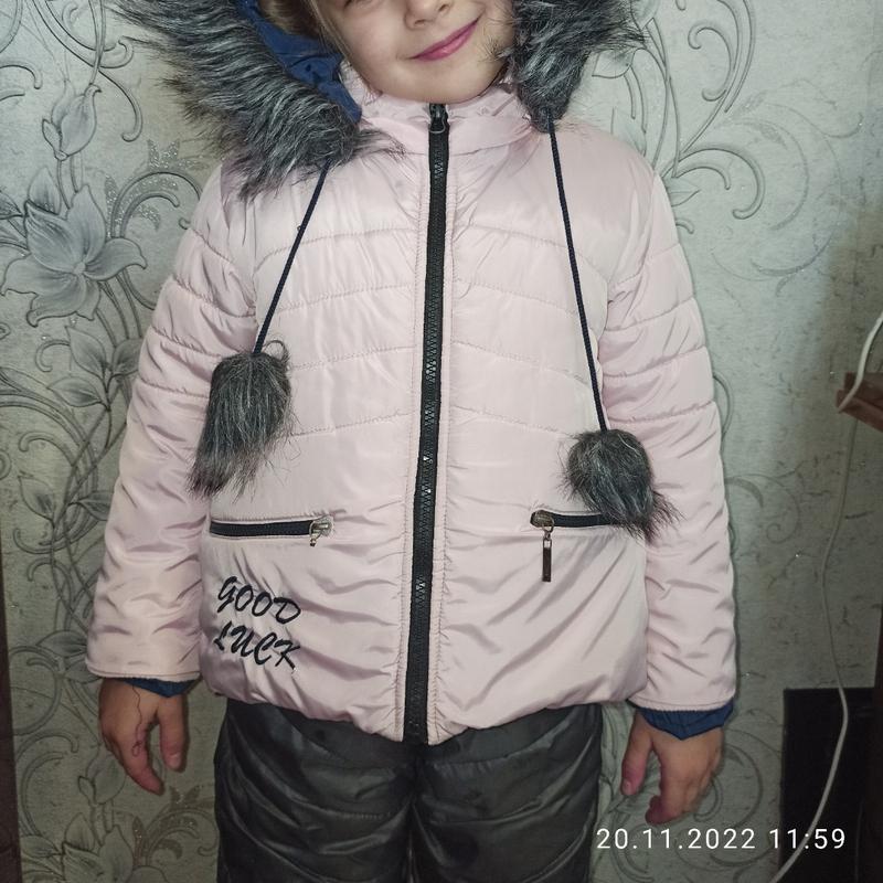 стан дуже хороший. тільки на одному з карманів загублений "брелок", чи як він називається 😅на фото видно. Та замки всі робочі. все інше в хорошому стані. всередині овчина. наповнювач -синтепон 300. спереду коротша, ззаду довша . якщо потрібно заміри-пишіть, заміряю. написаний розмір 110,але на 5 років вона закоротка на мій погляд. Краще на раніший вік, 3-4.На 3 можна рукавчики закатати, буде синій манжетик. на фото одягнена на 5,5 років, зріст 116. також запрошую подивитися інші товари у мене☺ якщо потрібно щось конкретне-пишіть, можливо це в мене є, просто ще не виклала.