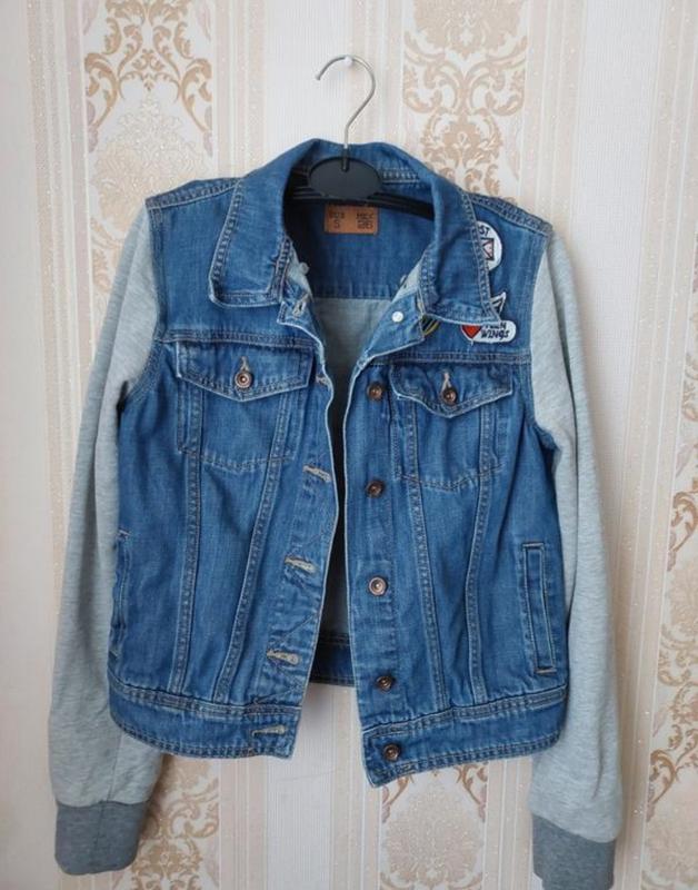 Джинсівка з капюшоном. В дуже хорошому стані. Розмір можна трішки зменшити. Є кишеньки. Заміри на фото. За додатковою інформацією пишіть ♡