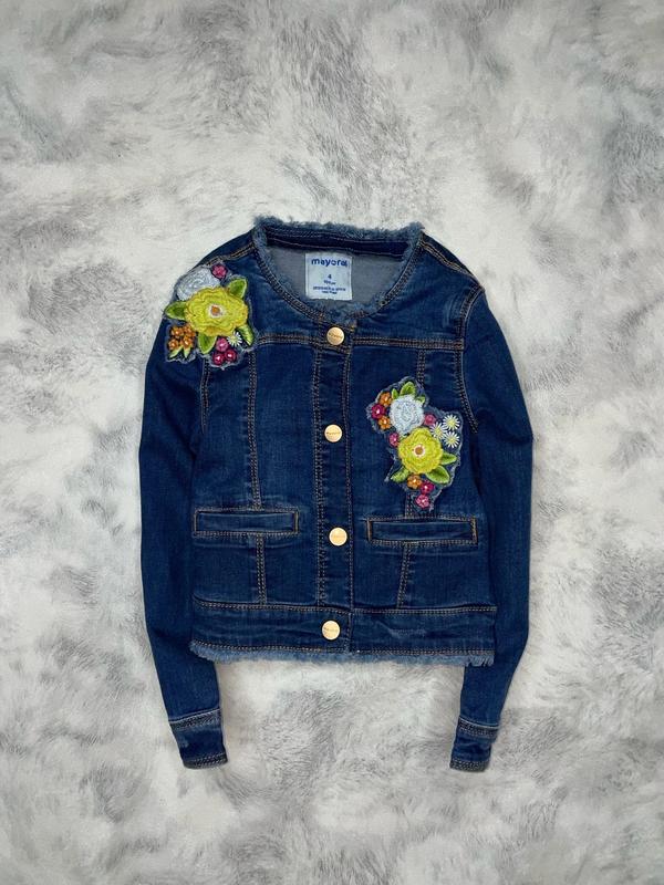 Джинсовая курточка с нашивками. Состояние идеальное без дефектов 🏷Mayoral 4 года Длина 32. ПОГ 28. Рукав 35