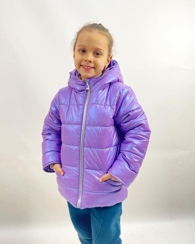 Куртка весна осень на флече с капюшоном фиолетовый цвет с переливом