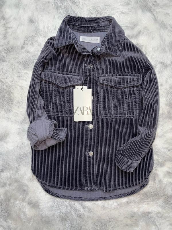 Куртка-рубашка из вельвета с воротником и длинными рукавами. Застежка на пуговицы, нагрудные карманы. Цвет Антрацитово-серый 🏷Zara 🔸9 лет 2 шт Длина 54/58. ПОГ 44. Рукав от шеи 58