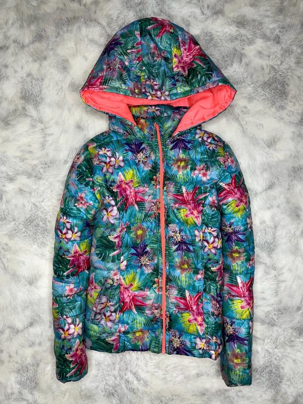 Демисезонная курточка яркой расцветки По бокам 2 кармана Застежка на молнию Высокая горловина Подкладка полиестер Состояние очень хорошее 10 лет/140 р Длина 49. ПОГ 38. Рукав 52
