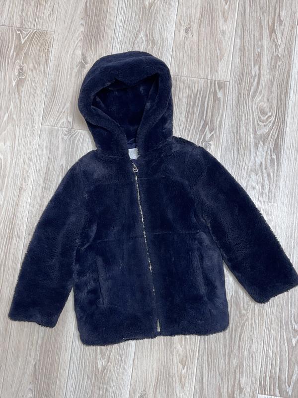 Теплая шубка Цвет темно синий Спереди 2 кармана Подкладочная ткань с наполнителем Состояние отличное 🏷️Zara 8 лет Длина 53. ПОГ 44. Рукав 45