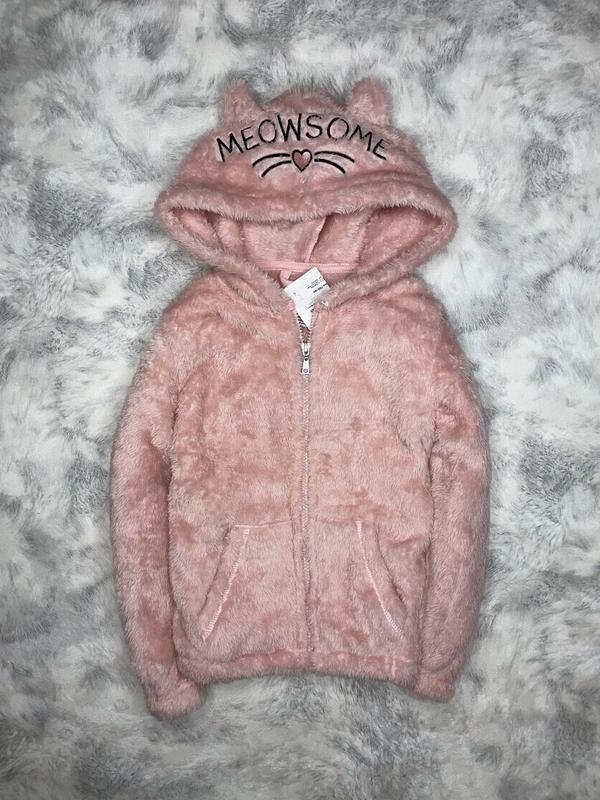 Тёплая Тедди кофта-курточка на змейке. Карманы спереди Капюшон с ушками и вышивкой. Качество безупречное, на ощупь мягенькая как плюш☺️ 🔹 3-4 года 2 Длина 40. ПОГ 35. Рукав 36