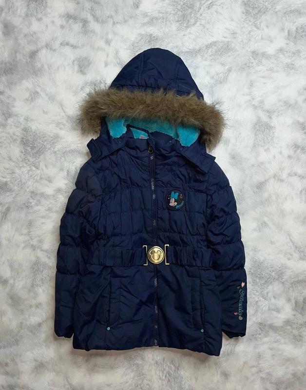 Тёплая курточка Minnie Mouse Подкладка микромахра Капюшон съемный Резинка-манжет в рукавах Высокий тёплый ворот 2 тёплых кармана Сезон еврозима/холодная осень-весна Состояние отличное без дефектов 🏷Disney 4 года Длина 48. ПОГ 34. Рукав 40