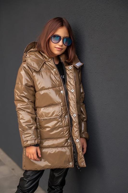 Зимова, тепла куртка підліткова арт. e.v. 2321 Тканина: високої якості щільна, зимова плащівка з водостійким покриттям (захищає від вітру, води та холоду, а також стійкий до забруднення), наповнювач силікон 250, підкладка фліс, зверху на рукавах додаткові застібки, захищає від снігу! Капюшон на застібках. Застібається на змійку, що ховається під планкою на кнопках. Колір: срібло, чорний, срібло, бузок, бежевий, хакі Розміри: 140-146, 146-152, 152-158, 158-164, 164-170