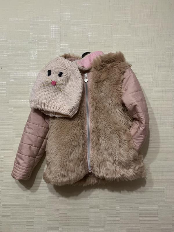 Дуже мила куртка з вушками і хвостиком 3-4 роки в чудовому стані. Довжина 42 ширина 33 рукав 37,5. Шапка на 4-8,трішки маломірить. Ширина 19 висота 21 90 грн