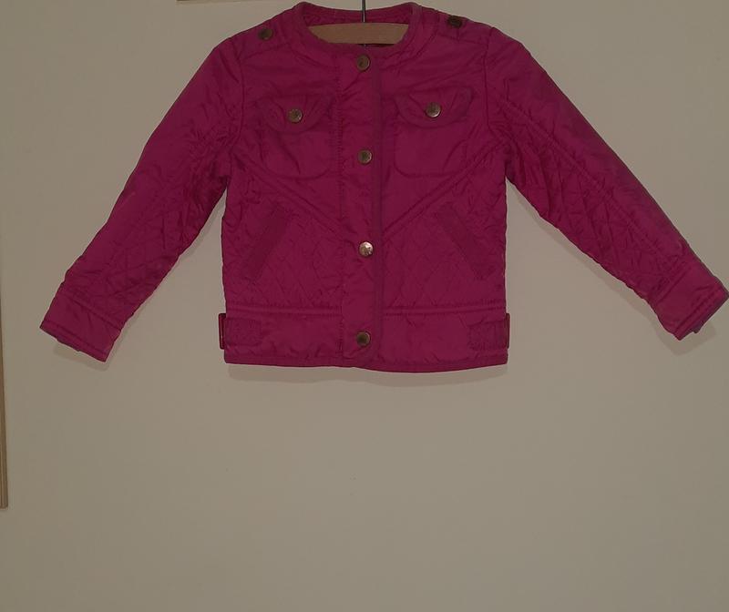 Куртка яскраво-рожева (малинова) демі, на пластмасовий замок, із прикриваючою планкою на кнопках. На манжетах рукавів із середини трикотаж- бавовна. Всі краї оброблені бавовною. Дуже гарно вистрочена. Замок і кнопки- є всі і діючі, тільки дещо стерті поверхні кнопок (див. фото). Розм. 98, на 2-3роки. Стан дуже хороший. Камера не зовсім вірно передає колір. Склад верх-100% нейлон, підклад-100% поліестер. Заміри: ПОП 26см ПОГ 31см ПОниз 31см Довжина 36см Довжина рукава 34см/26 від пройми