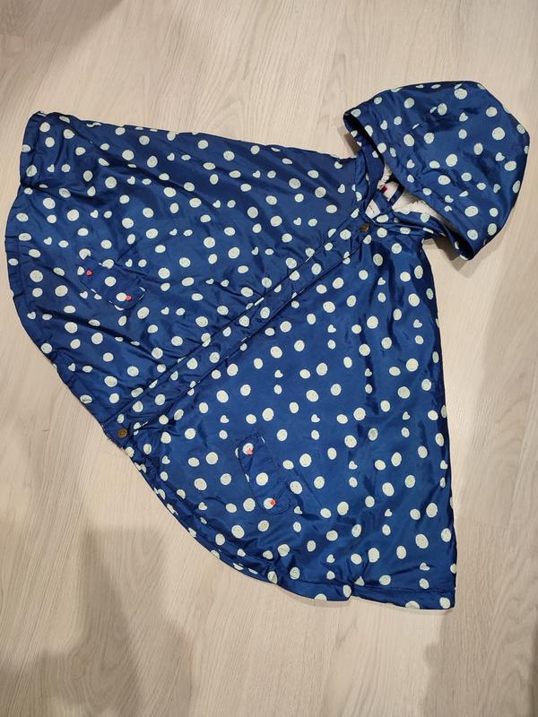 Оригинальный плащик с капюшоном для девочки, состояние идеальное. Снаружи - полиэстер, внутри - мягкий искусственный мех. Размер 122/128, 7-8 лет. Замеры: длина по спинке 53 см, длина рукава от горловины 53 см.