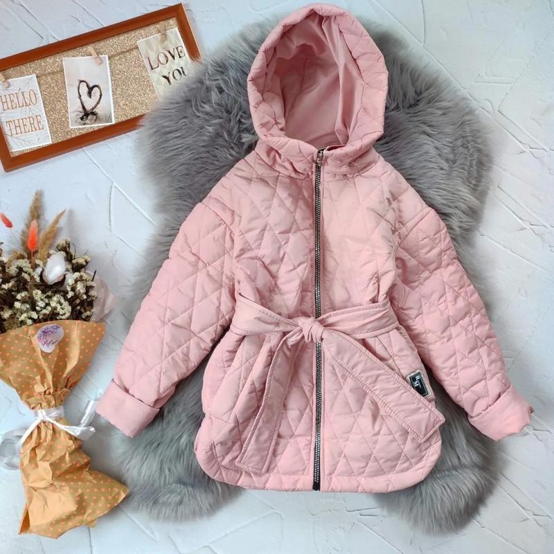 Модная стеганая куртка с капишоном имеет поясок ткань матовая плащевка утеплитель силиконизированный синтепон 100,цвет бежевый ОТМЕННАЯ КАЧЕСТВО! 134-длина 60,пог 44,рукав от горловины 59 140-длина 62, пог 45,рукав от горловины 61 146-длина 63,пог 47,рукав от горловины 63 152-длина 65, пог 48,рукав от горловины 65 158-длина 68,пог 50,рукав от горловины 67 +-2 СМ Цена 1280 грн Ang