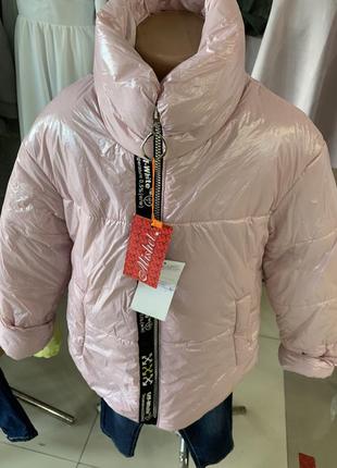Весенняя куртка укороченная.Комир-стойка.Рукав с запасом подворачивается на 5 см.Гарного пудренного цвета.