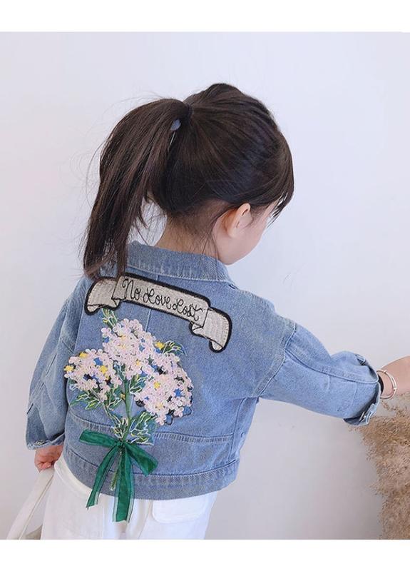 Джинсовая куртка для девочки, детская джинсовая куртка голубая, джинсовая куртка с вышивко...
