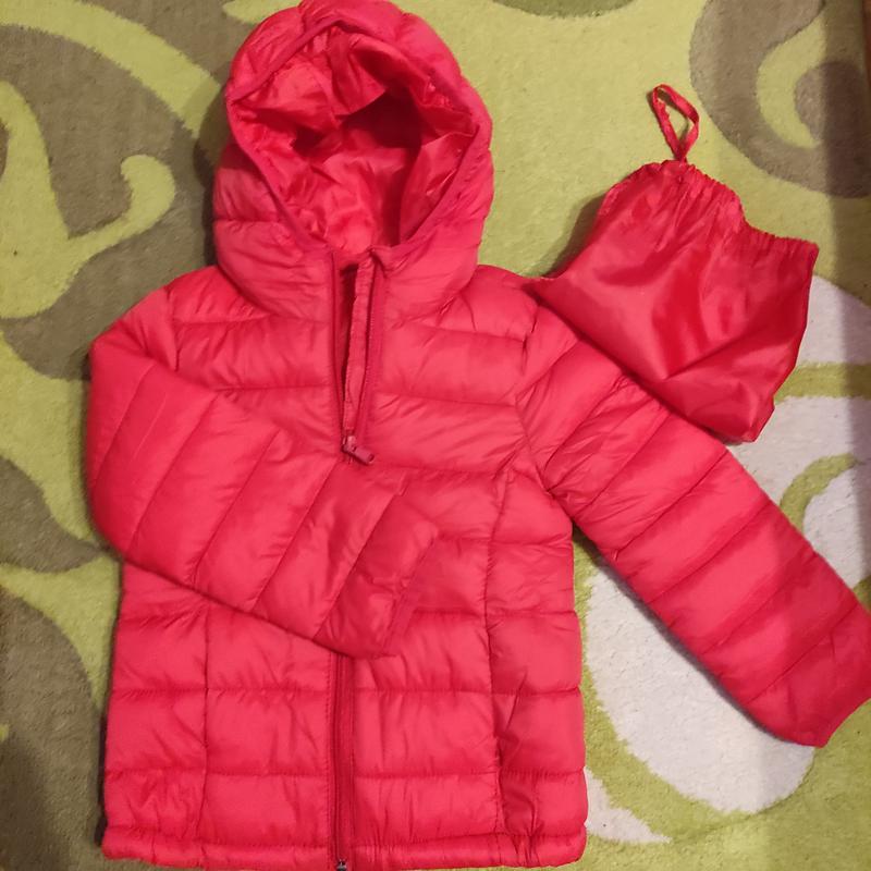Куртка новая,но не знаю куда дела ярлык..купили во франции,ехать менять было далеко.в 5 лет с небольшим она была впритык.лучше с 4 лет (104-110).средняя плотность утеплителя.примерно март,апрель,сент,октябрь.длина 42 см,рукав 36.в груди 32.низ 32.цвет красный ,на фото получился как малиновый.к куртке идет мешочек для поездок или хранения компактного.смотрите другие мои объявления.