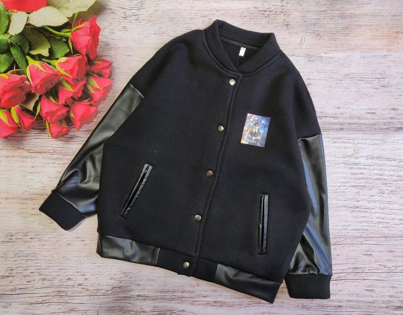 Ціна 890 грн Стильний бомбер на весну🌷для юної красуні❤️🔥Тканина трьохнитка турецького виробника дуже гарної якості👌,м‘ягенька,не рипить,для міцності кнопок є ущільнювач👍Рукав та вставки екошкіра💕Наклейка для сучасних дівчаток,тренд цього сезону WEDNESDAY❤️🔥💕❤️ заміри-довжина бомбера\ширина\довжина рукава від горловини 134зріст-57/50/60 140 зріст-62/53/63 146 зріст-65/55/64 152 зріст-68/56/68 158 зріст-73/57/73