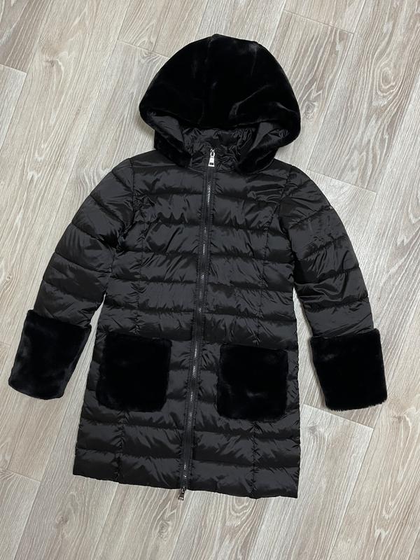 Демисезонное пальто с наполнителем Манжеты, карманы и капюшон из меха Капюшон глубокий и съемный Высокий ворот Подкладка полиестер Двойная молния Состояние новое без бирки 🏷️Ido 12 лет/152 Длина 77. ПОГ 45. Рукав 56-64