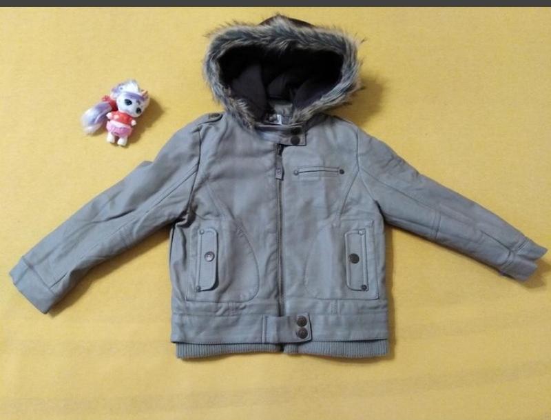 Красивая, стильная, новая курточка для девочки. Бренд Zebralino, размер 110. Кожзаменитель, сезон теплая весна-осень. Капишон прищегивается на пуговицы. Длина курточки от капишона 39 см. Ширина 36 см. Ширина куртки внизу 33 см. Длина рукава от плеча 36 см.