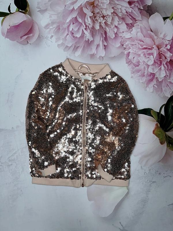 Бомбер в пайетки Подкладка полиестер Состояние идеально 🏷️H&M 2 года/92 Длина 33. ПОГ 30. Рукав 30-36