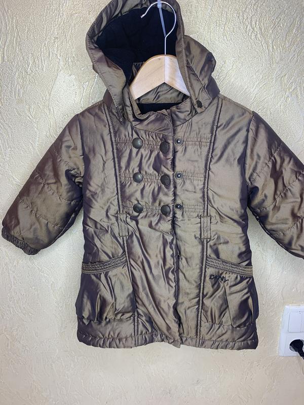 Куртка детская для девушки "DKNY" Цвет: бронза-золото Размер: 18 м Состав верх: Полиамид 65%, Полиэстер 35% Состав подкадка: Хлопок Молния + кнопки металлические, капюшон на кнопках