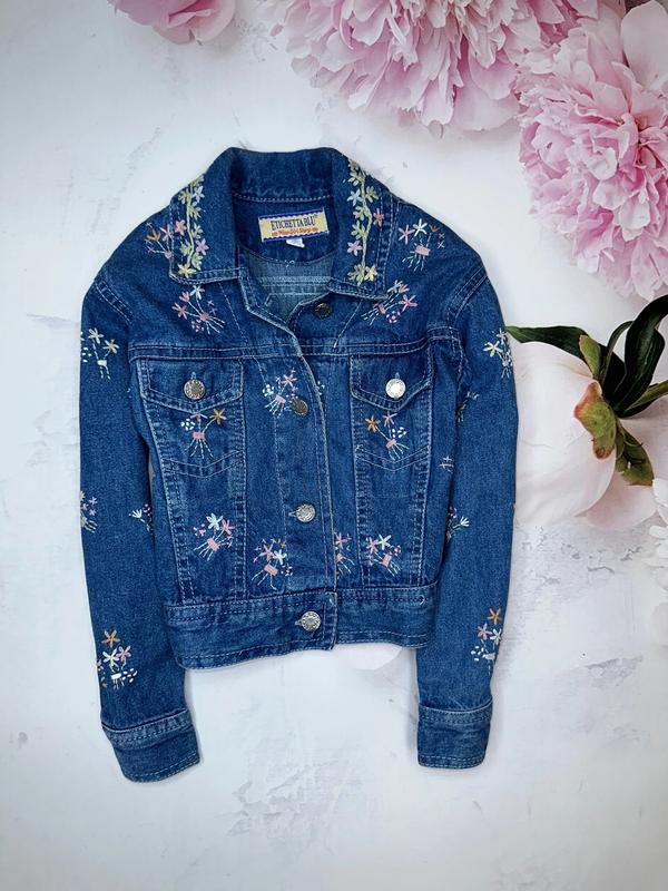 Джинсовая куртка с вышивкой Состояние идеальное 6 лет/116 р Длина 36. ПОГ 39. Рукав 41-52
