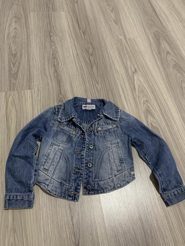 Курточка очень стильная,в идеальном состоянии,размер на 5-6 рочков,зад чуточку короче на фото виден(длина спереди 35 см, сзади 32 см,ширина 34 см, длина рукава 42 см)