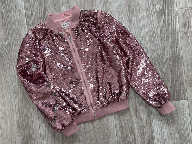 Куртка бомбер в пайетки Подкладочная ткань полиестер Состояние идеальное 🏷️H&M 9-10 лет/140 Длина 48. ПОГ 43. Рукав 55-63