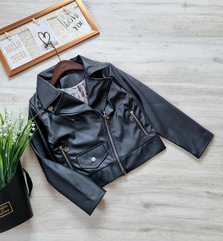 Стильная косуха ткань эко-кожа на подкладке по бокам рабочие карманы 134(5 шт)-длина 43,рукав 50, пог 36 +-2 см