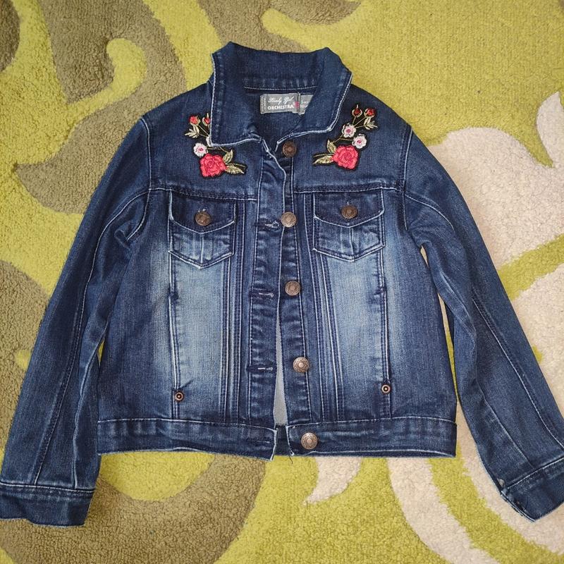 Джинсовая куртка Orchestra размер 110 (5 лет).состояние хорошее.70 хлопок,26 полиэстер,3 вискоза,1 эластан длина 35,рукав 37,в груди 33,низ 32.смотрите другие мои объявления