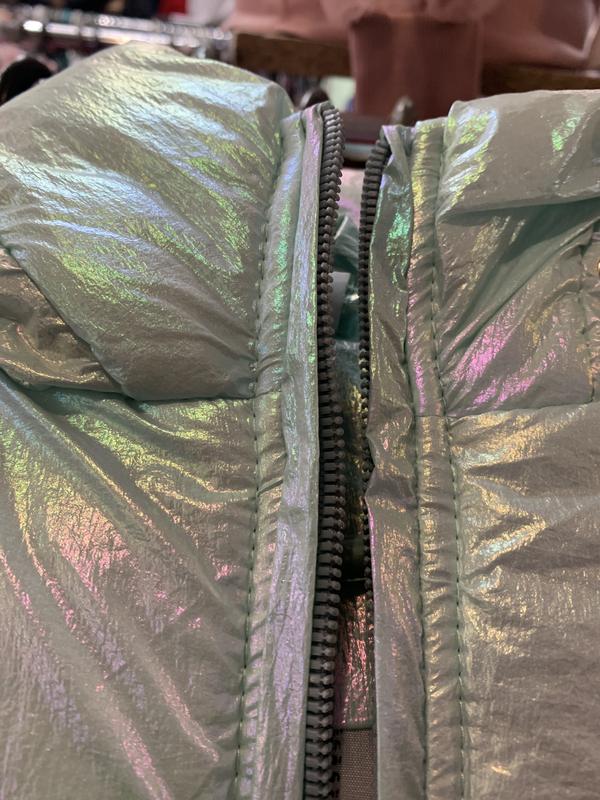 Теплая короткая девчачья курточка.Перламутрового цвета.Рукав внизу на трикотажной резинке.Есть карманы и капюшон