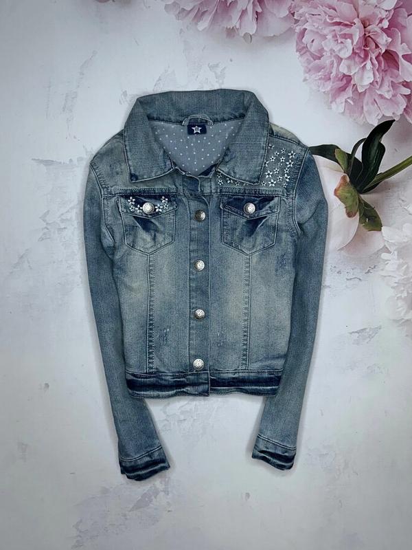 Куртка джинсовая Удобно застёгивается на кнопки Состояние идеальное 8-9 лет/128-134 Длина 45. ПОГ 36. Рукав 48