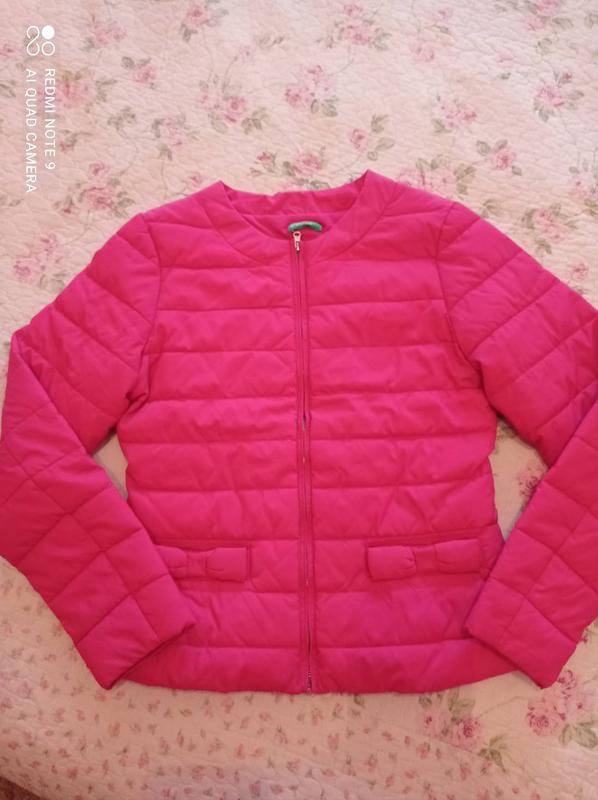Куртка для девочки, торговой марки "Benetton", розового цвета,карманы украшены бантиками, без капюшона. Привезена из Италии Размер 160 см : длина рукава - 57 см; длина (по спине)-54 см; ширина (под руками) -88 см. Состояние: отличный