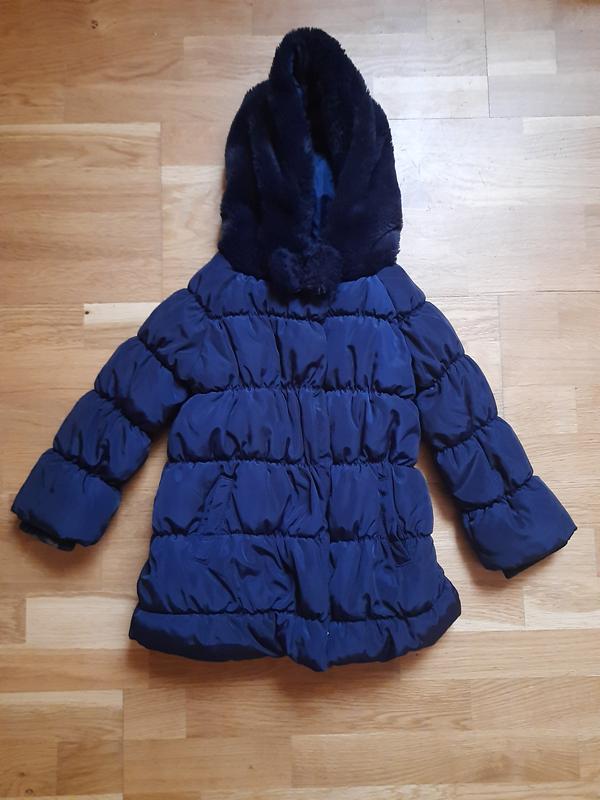 Супер куртка на осень-весну. Рост 92. Состояние идеальное. Фирменная . Утеплена синтепоном+флисовая подкладка. На молнии и кнопках. Красивый темно синий цвет. Капюшон меховой. Длина 42см, между подмышками 33см, длина рукава от горловины 37см, есть потайной трикотажный рукав. Цена 180грн
