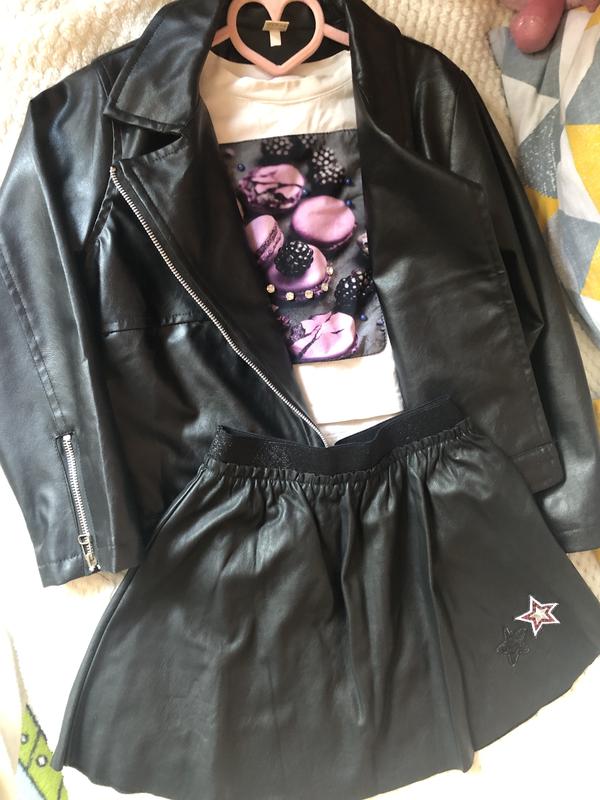 Костюм кожаная куртка, кожаная юбочка и топик. Все можно приобрести отдельно. На 8-9 лет