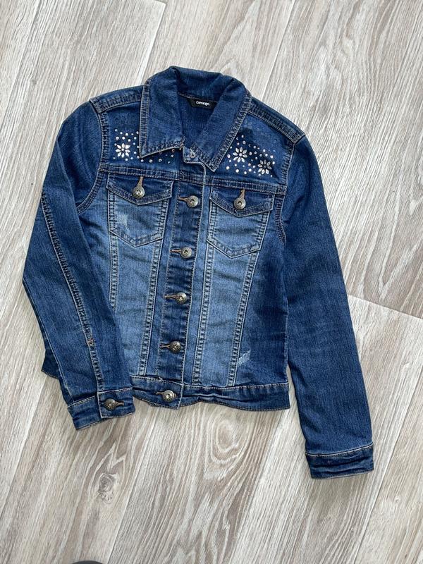 Джинсовая курточка украшенная стразами. 🏷George Бирочки с возрастом нет, смотрите замеры. ♦️приблизительно 9л Длина 43. ПОГ 36. Рукав 48