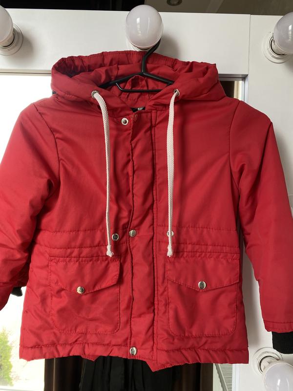 Демисезон, хорошее состояние Длина спереди 44 см, сзади 50 см, ширина 38 см, рукав 40 см, капюшон не снимается Подкладка флис Указан размер 98 см, идет намного длвнее Мы носили до 4