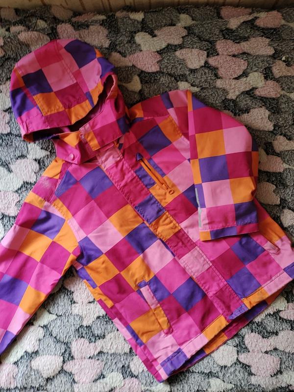 Куртка с флисовым подкладом, на каждый день. В хорошем состоянии, все молнии рабочие. В яркой расцветке, не выгорает. При необходимости капишон можно снять. на рост 110-122см