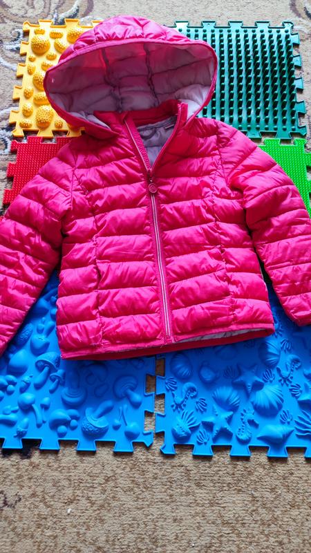 На фото видно дефект у самому низу. В другом состоянии идеал. Утеплена синтепоном. Имеет карманы внутри и снаружи. Материал верха достаточно плотный, не пропускает ветер. Куртка удобная, легкая. Цвет насыщенный малиновый.