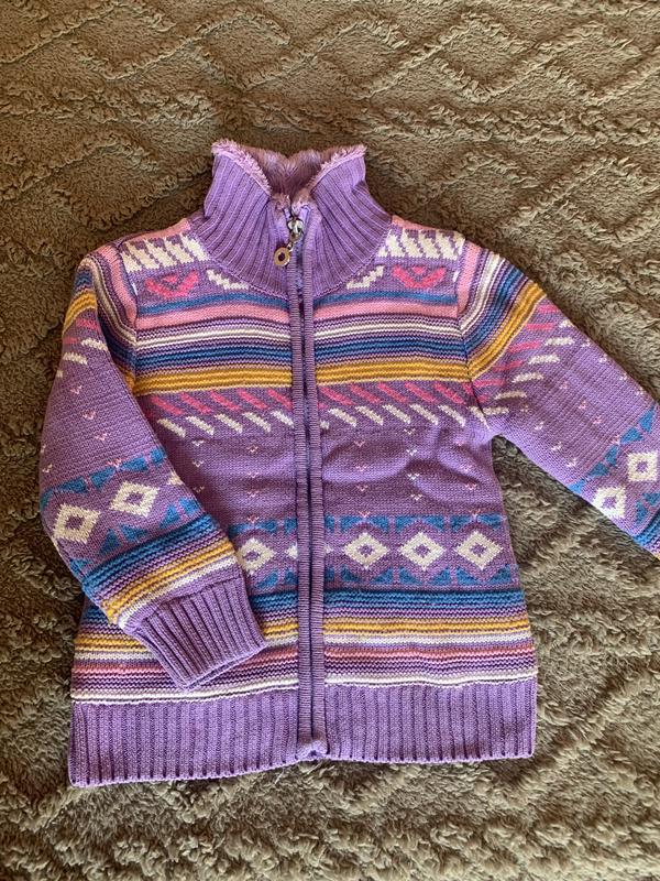 Красивая и теплая кофта. Можно носить вместо куртки. Внутри полностью на меху. Рукава утеплені хутром теж. В идеальном состоянии.без дефектов. Одевали разы 3 Длина 38см Грудь 31см Рукав 33см