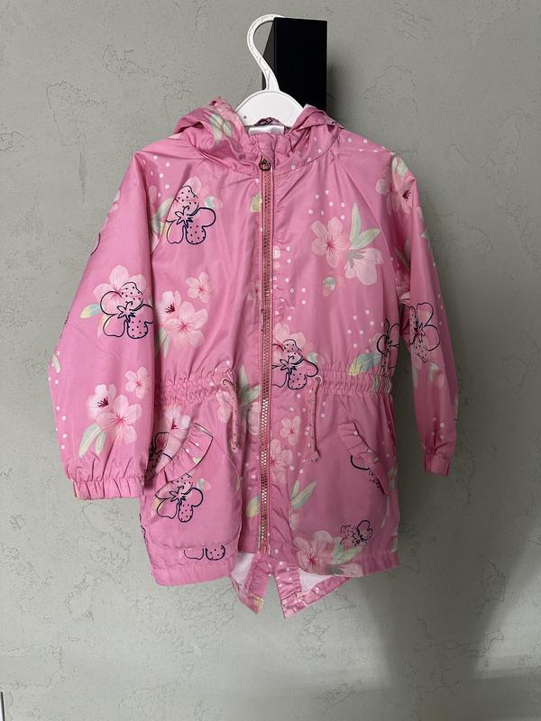 Плащівка -парка на дівчинку 2-3 роки(ми носили до 4) на мʼягенькому флісі,ззаду подовжена,пояс затягується шнурівками) з карманчиками,заміри :рукав від капішону 40см, довжина спереду 45,5 зі спини 52 ,ширина під ручками 35.