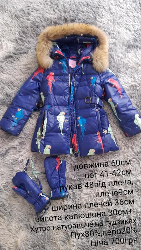 Пух 80%перо20% Мех отстегивается, натуральный В комплекте перчатки Теплая, легкая НЕ продуваемая Размер 130р замеры на фото Отправка по укрпошту и новой при авансе 100грн