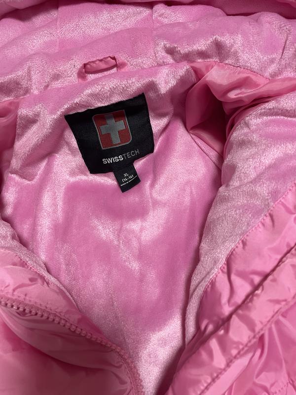 Куртка женская От швейцарского бренда «SWISS TECH” Невесомая, впечатляюще сохраняет тепло до -5 холодная осень/зима Мягкий флисовый подклад Цвет: нежно розовый Размер: XXL (18/20 лет) Длина: 66 см; Полуобхват груди:48 см; Рукав от горловины-72 см; Куртка прямая Карманы скрытые, капюшон совместим Размер: XL(14/16 лет) Длина: 60 см Полуобхват по груди:45 см; Рукав от горловины: 68 см;