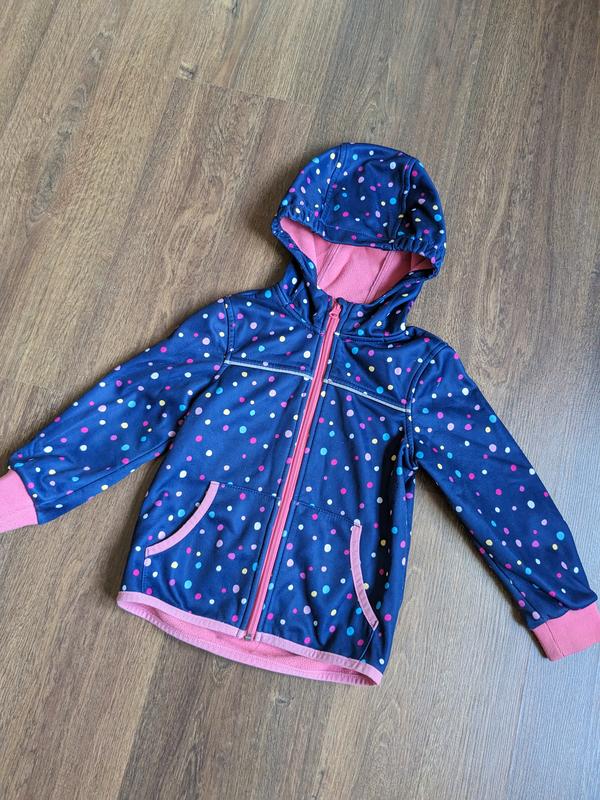 Осенняя термо куртка на флисе (soft shell) на 3-4 года Стан замечательный Очень удобная, комфортная, насыщенный яркий цвет Качество супер! Не продувается, а флис дает комфортное тепло внутри