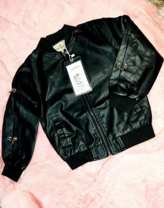 🔵🌿Дитяча курточка🌿 Демісезон🌟 ⚜️Матеріал верху:еко шкіра ⚜️ Склад тканини: 80% бавовна, 20%Polyester ❗❗❗ Розмір вказаний виробником 9років на зріст 120см,альо модель маломірить❗ ЗАМІРИ: Розмір: 120 Ширина плечей: 30см ПО грудей: 39 см ПО стегон: 32см . Довжина рукава: 41см. Довжина виробу: 45см. Колір:чорний🌺🔥⚜️