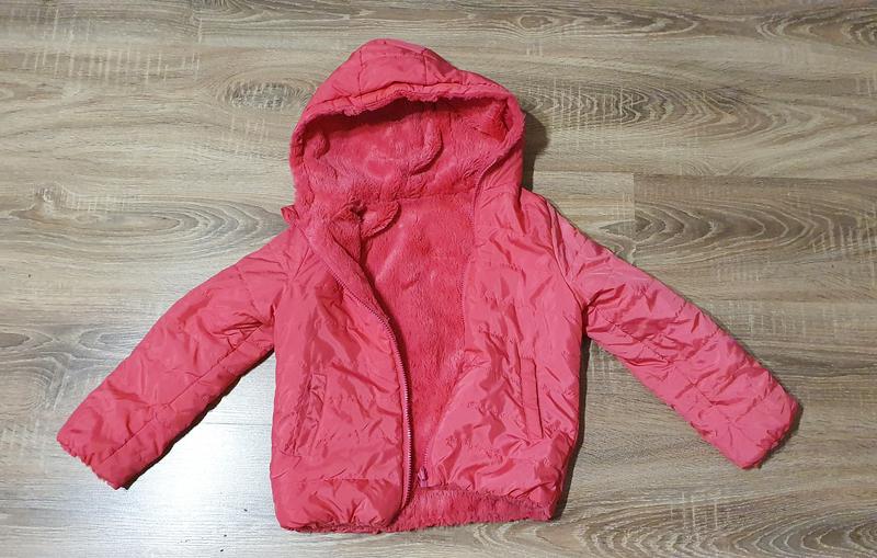 Куртка на девочку, двухсторонняя. Размер 134 В очень хорошем состоянии, подкладка "травка" Плечи - 31см Длина по спинке - 49см Полуобхват груди - 40см Длина рукава от плеча - 47см (можно закотить уменьшив рукав на 5см)
