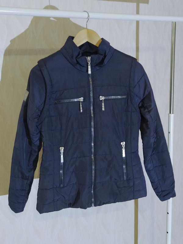 курточка имеет съемные рукава, благодаря чему она превращается в жилетку. [ ДЕТАЛІ ] размер: на рост 158 см [ ЗАМІРИ ] длина по спине: 62-63 см полухват груди: 46 см длина рукава: 66 см плечи: 38 см Если нужны дополнительные детали — убедитесь☺️