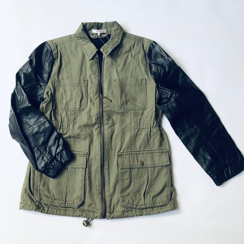 Стильная парка на теплую осень. Коттон, рукава-кожа. Без утеплителя на коттоновой подкладке Будет на 10 лет маломерить (производитель пишет 12-13 лет) внимательно зверите замеры Рукав 48 см., довжина 55 см., ширина 38 см.