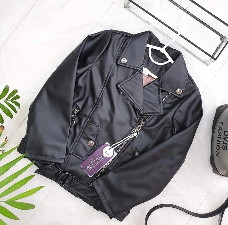 Крута косуха ткань косухи экокожа на подкладке с кармашками на замочке внизу с поясом без заклеек на воротнике! РЕКОМЕНДУЮ! 134(1 шт)-длина косухи 47, пог 39,рукав 46 +-2 см